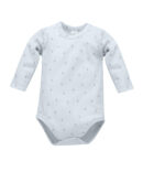 Bodijs ar garām piedurknēm HELLO. Spiedpogu aizdare uz kreisā pleca un kājstarpē.