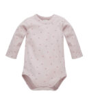 Bodijs ar garām piedurknēm HELLO PINK HEART. Spiedpogu aizdare uz kreisā pleca un kājstarpē.