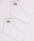 Meiteņu zeķes ar 3D aplikāciju – krāsainiem pomponiem. Zeķu pieklusinātās krāsās lieliski papildinās jūsu vasaras un pavasara stilu. Žakarda struktūra padara zeķītes gaisīgas un vieglas . Zeķes satur elastānu , kas neļauj tām mainīt formu. Tie ir elastīgi un lieliski izskatās uz bērna kājas.
