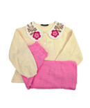 Muslina kostīms “VASARA” ir lieliska izvēle vasaras sezonai, nodrošinot bērnam gan komfortu, gan stilu. Šis kostīms sastāv no divām daļām: vieglas krēmkrāsas blūzes ar garām piedurknēm un rozā biksēm.