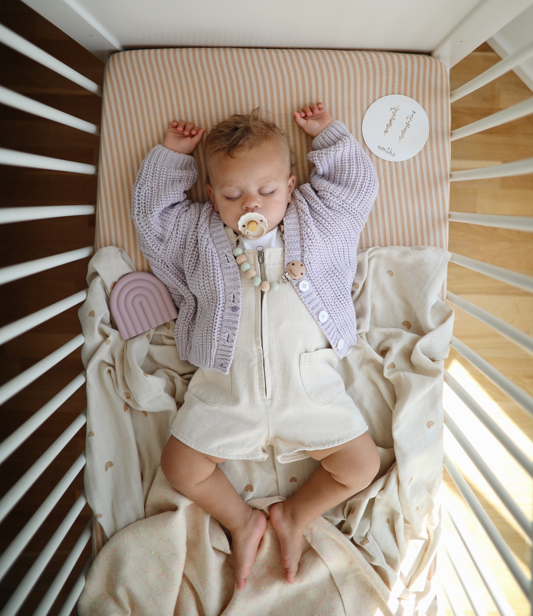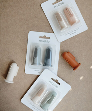 Lielisks papildinājums šai graužamrotaļlietai ir Mushie nomierinošā pirkstiņbirstīte.